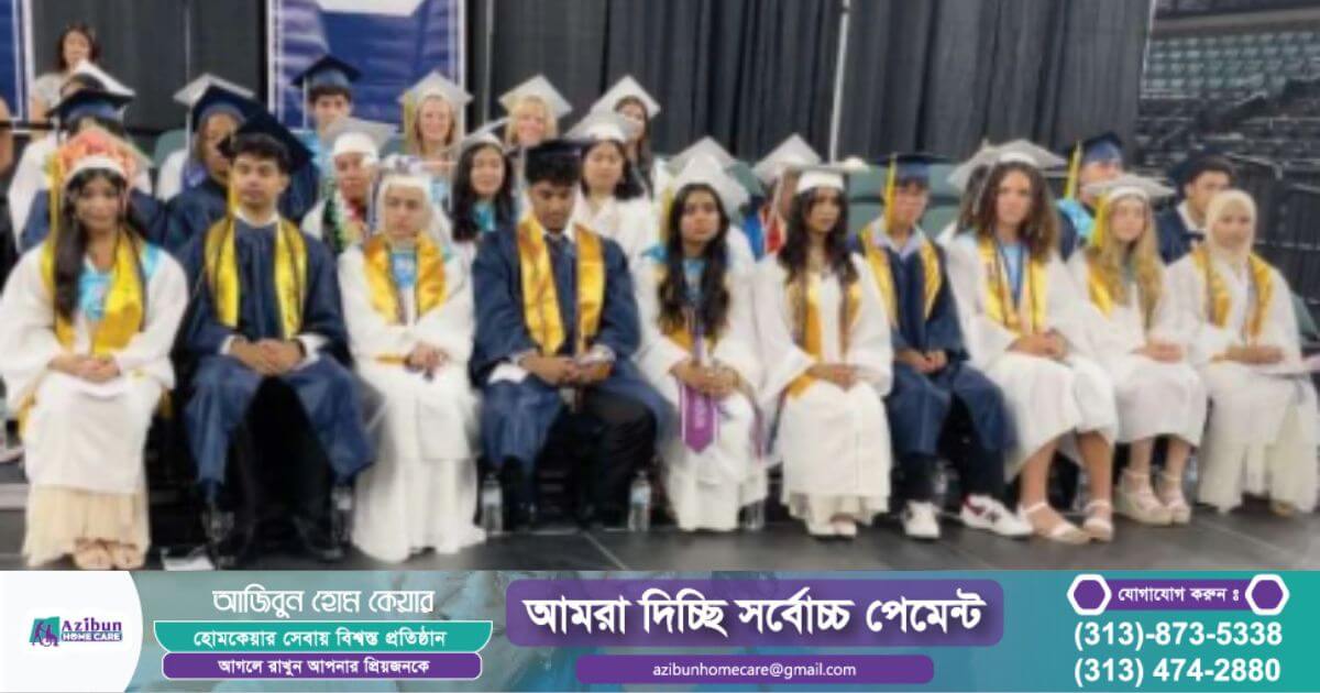 গত ২৩ জুন ঐতিহাসিক জিম হুইলান বোর্ডওয়াক হলে এই গ্র্যাজুয়েশন অনুষ্ঠিত হয়। দুপুর থেকেই গাউন পরা শিক্ষার্থীরা পরিবারের সদস্যদের নিয়ে সমবেত হন মিলনায়তনে। চার বছরের সাধনার শেষে অর্জনের আনন্দ তাদের চোখেমুখে ফুটে উঠেছিল। অনুষ্ঠান শুরু হলে মেধাবী শিক্ষার্থীদের নাম ঘোষণা করা মাত্রই করতালিতে মুখর হয়ে ওঠে পুরো মিলনায়তন। পূর্বসূরি বাংলাদেশি শিক্ষার্থীদের সফলতার ধারাবাহিকতা বজায় রেখে এবছরও কৃতিত্বের স্বাক্ষর রেখেছে বাংলাদেশি আমেরিকান শিক্ষার্থীরা। মেধা তালিকার সেরা দশে স্থান পেয়েছে ফাইজা, ইশতিয়াক, তানজিয়া, ইশরাক, তাসনূভা, আমেরা ও নাদেরা এমন একাধিক শিক্ষার্থী।