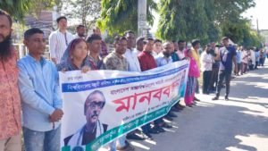 অরুণ বাহাদুর লামার পরিচালনায় সিকৃবিতে জাতির পিতা বঙ্গবন্ধু শেখ মুজিবুর রহমান এর ম্যাুরাল প্রাঙ্গনে অনুষ্ঠিত মানববন্ধন কর্মসূচিতে বক্তব্য রাখেন সিলেট কৃষি বিশ্ববিদ্যালয় কর্মচারি পরিষদের সভাপতি শাহ আলম সুরুক, সহ-সভাপ