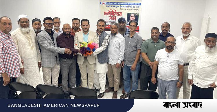 সভা শেষে অতিথি ময়নুল ইসলাম (লিটন)কে ফুল দিয়ে শুভেচ্ছা জানান বন্ধুমহল অব বিয়ানীবাজার মিশিগান’র নেতৃবৃন্দ।