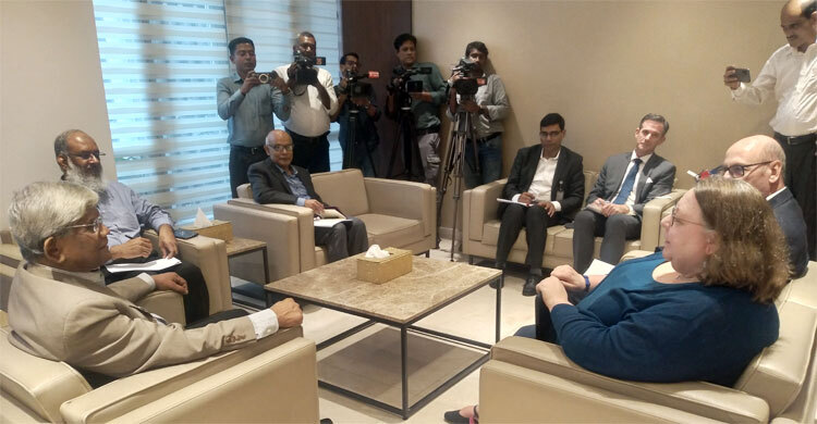 জিএসপি নিয়ে কি আলোচনা হয়েছে জানতে চাইলে তিনি বলেন, জিএসপির সব শর্ত আমরা পালন করতে পারছি না। আমি এখন বক্তব্য দিয়ে দিলাম দেখা গেলো হলো না। তবে এসব কিছু এত কঠিন না আমাদের জন্য। এটাও হবে যুক্তরাষ্ট্র আমাদের জন্য খুব গুরুত্বপূর্ণ। ওরা আমাদের অধিকাংশ খাতে সহায়তা করে। বাংলাদেশের উপকূলীয় অঞ্চলে তাদের বড় বিনিয়োগ রয়েছে। আপনারা দেখবেন বাগেরহাট, পিরোজপুরসহ উপকূলীয় অঞ্চলের বিনিয়োগ রয়েছে। তারা কিন্তু কৃষিখাতসহ বিভিন্ন জায়গায় সহায়তা করছে। মূলকথা হচ্ছে কৃষি, এনার্জি, জলবায়ু খাতসহ অন্যান্য খাতে আরও বেশি বিনিয়োগ করার কথা বলেছি আমি তাদের।তিনি বলেন, বিশেষ করে বন্যার বিষয়টি গুরুত্ব দিয়ে বলেছি আজকের আলোচনায়। সবচেয়ে বেশি বেসরকারিখাতে চ্যালেঞ্জ মোকাবিলায় বিশেষ করে, বিজিএমইএ ও জিএসপি নিয়ে তাদের কিছু শর্ত আছে সেটা আপনারা জানেন। সেগুলো পালনের তাগিদ দিয়েছে।
