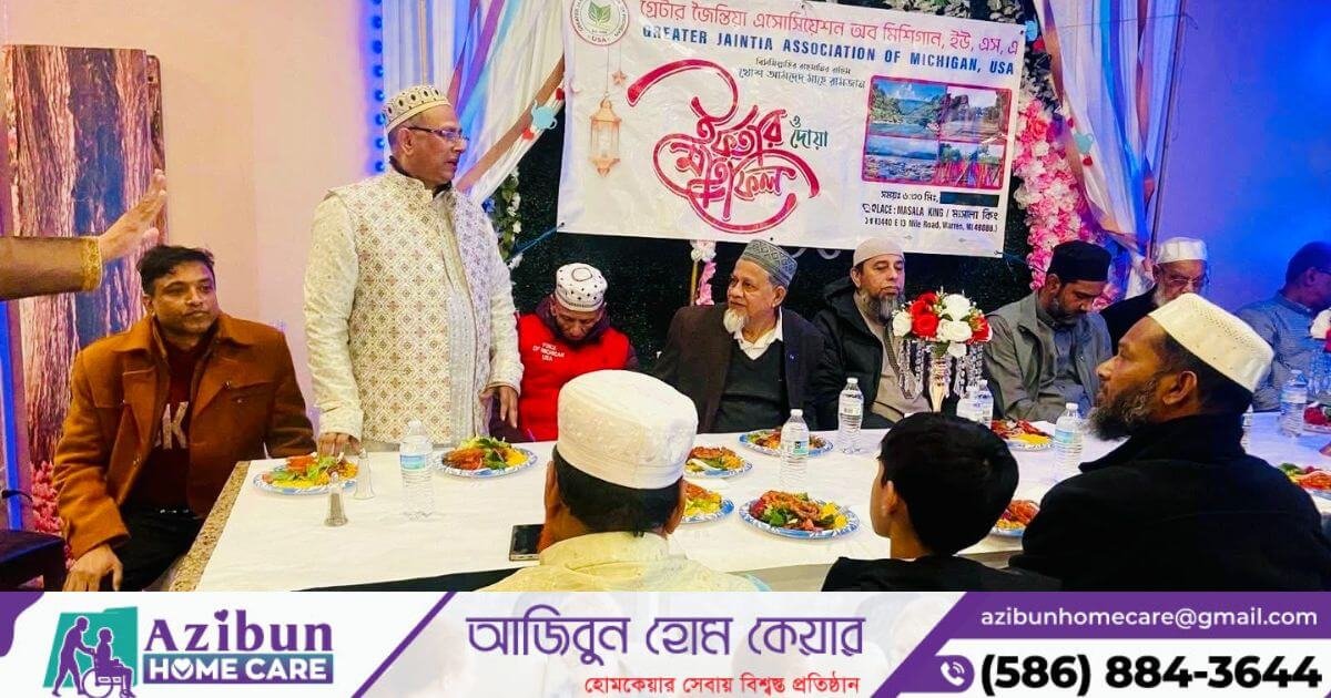 উত্তর সিলেটের সর্ববৃহৎ ঐতিহ্যবাহী সামাজিক সংগঠন গোয়াইনঘাট, জৈন্তাপুর, কানাইঘাট ও কোম্পানীগঞ্জ উপজেলার যুক্তরাষ্ট্রের মিশিগানে বসবাসরত প্রবাসীদের সংগঠন “ গ্রেটার জৈন্তিয়া এসোসিয়েশন অব মিশিগান” কর্তৃক আয়োজিত ২০২৬ এর ইফতার ও দোয়া মাহফিল ১৫ ই মার্চ শনিবার মিশিগানের অভিজাত রেস্টুরেন্ট “ মাসালা কিং “ এর সুবিশাল হল রুমে শতাধিক অতিথির উপস্থিতিতে অনুষ্ঠিত হয় । সংগঠনের সভাপতি জনাব আবুল কালাম আজাদ এর সভাপতিত্বে ও ইন্জিনিয়ার খাজা আফজাল হোসেন ও সহ – সাধারণ সম্পাদক জামালুর রহমান জামালের যৌথ সঞ্চালনায় ইফতার পূর্ব দোয়া মাহফিলে কুরআন তেলাওয়াত পরিচালনা করেন হাজী আব্দুর রকিব ।