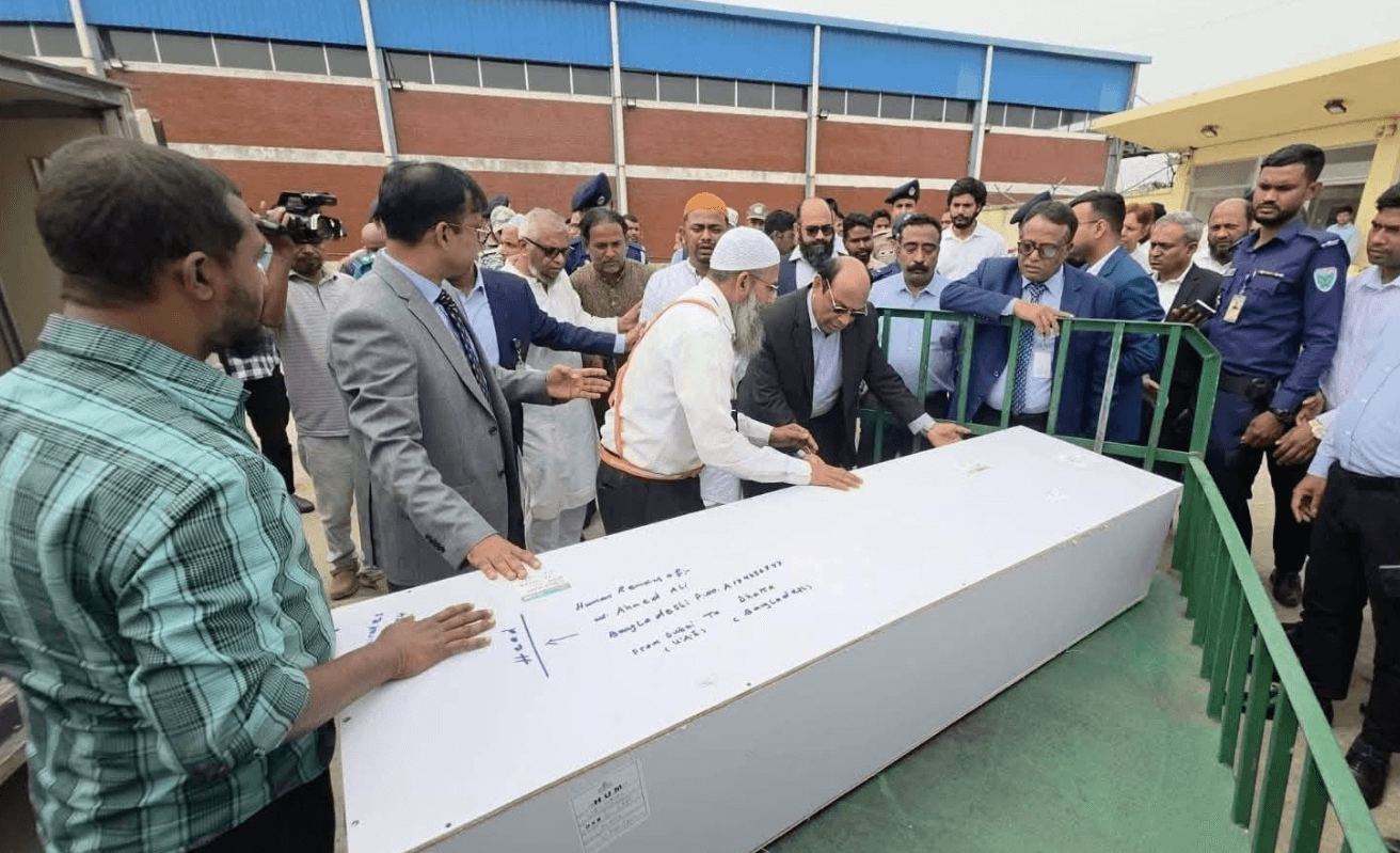 সোমবার দুপুরে তাকে বহনকারী বিমান সিলেটের ওসমানী আন্তর্জাতিক বিমানবন্দরে অবতরণ করে। এর আগে দুবাই থেকে মরদেহ প্রথমে ঢাকায় আনা হয়। সেখানে প্রবাসীকল্যাণ প্রতিমন্ত্রী মো. নুরুল হক ও পররাষ্ট্র প্রতিমন্ত্রী শামা ওবায়েদ মরদেহ গ্রহণ করেন। পরে মরদেহ সিলেটে এনে বড়লেখার গাজিটেকা (বাঁশতলা) গ্রামের বাড়িতে নিয়ে যাওয়া হয়। জানাজায় স্থানীয় জনপ্রতিনিধি, প্রশাসনের কর্মকর্তা, আত্মীয়-স্বজন ও হাজারো মানুষ অংশ নেন। প্রিয়জনকে শেষ বিদায় জানাতে এসে অনেকেই কান্নায় ভেঙে পড়েন। গ্রামের আকাশ-বাতাস যেন শোকের ভারে নীরব হয়ে ওঠে।