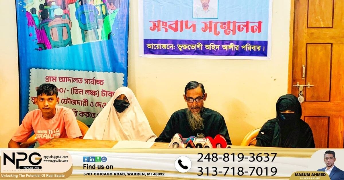 উল্লেখ্য, জোড়া খুনের ঘটনায় নিহত জামাল উদ্দিনের স্ত্রী হালিমা বেগম বাদি হয়ে থানায় মামলা দায়ের করেন। মামলায় মোট ১৬ জনের নাম উল্লেখ করা হয়, যার মধ্যে অহিদ আহমদ ১৪ নম্বর এজাহারভুক্ত আসামি। সংবাদ সম্মেলনে পরিবারটি ঘটনার তীব্র নিন্দা জানিয়ে প্রকৃত খুনিদের দ্রুত গ্রেপ্তার ও দৃষ্টান্তমূলক শাস্তির দাবি জানায়। একই সঙ্গে সুষ্ঠু ও নিরপেক্ষ তদন্তের মাধ্যমে নিরপরাধ অহিদ আহমদকে মামলার দায় থেকে অনতিবিলম্বে অব্যাহতি দেওয়ার জোর দাবি জানানো হয়।