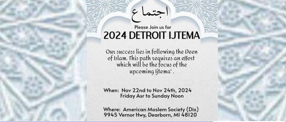 ইজতেমা ২০২৪ এই বছর ডেট্রয়েট, মিশিগানে অনুষ্ঠিত হতে যাচ্ছে। আগামীকাল শুক্রবার আসরের নামাজের পর শুরু হবে রবিবার পর্যন্ত এ আয়োজন চলবে। এই বছর ইজতেমা ডিয়ারবনের আমেরিকান মুসলিম সোসাইটি (বড় মসজিদ)-এ অনুষ্ঠিত হবে।