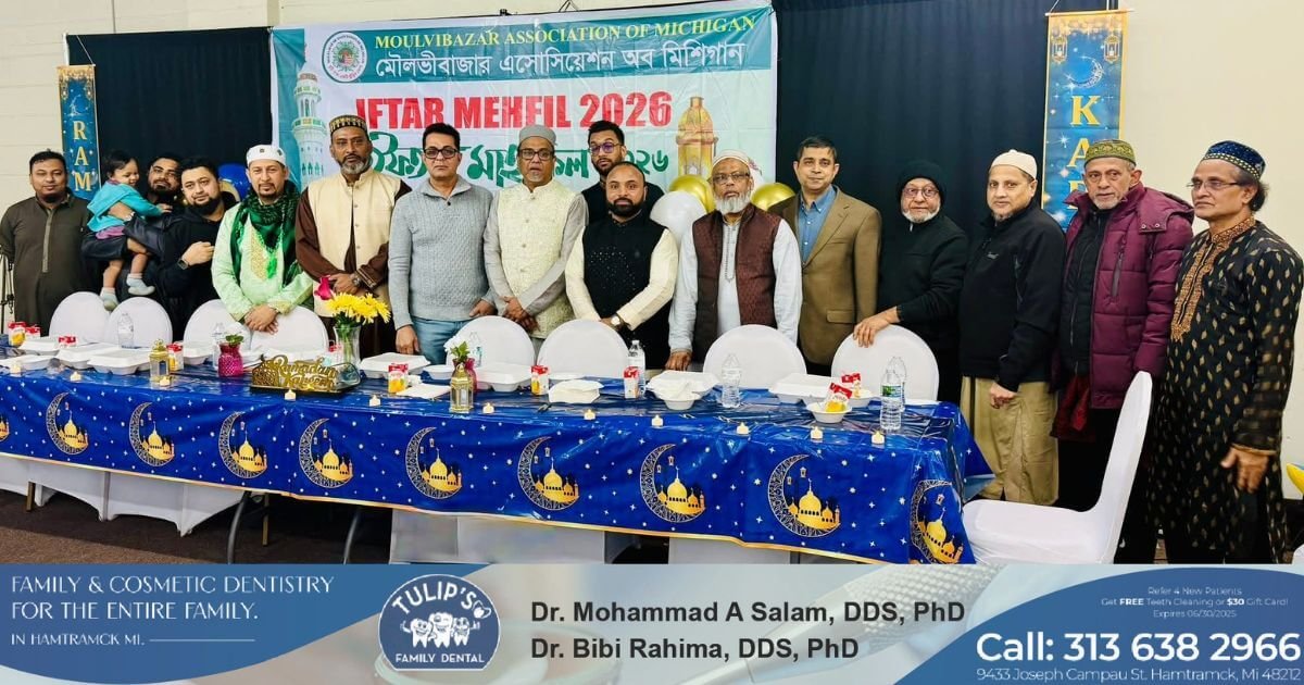 গত ৮ মার্চ রোজ রোববার ওয়ারেন সিটির আইওয়ানা মসজিদ হল রুমে মৌলভীবাজার এসোসিয়েশন অব মিশিগানের বার্ষিক ইফতার মাহফিলের আয়োজন করা হয়। শুরু তেই এসোসিয়েশনের বিভিন্ন পযার্য়ের নেতৃবৃন্দ অনুষ্ঠানে আগত অতিথি বৃন্দসহ এসোসিয়েশনের সকল নেতৃবৃন্দ ও সদস্যবৃন্দ সহ উপস্থিত সবাই কে পবিত্র মাহে রমাদানের শুভেচ্ছা জানান।