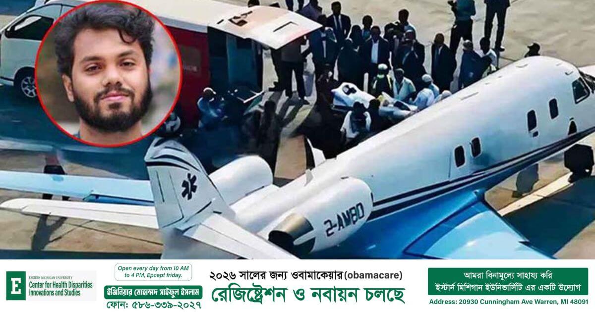 এর আগে, দুপুর দুইটার কিছু সময় আগে ওসমান হাদিকে বহনকারী এয়ার অ্যাম্বুলেন্সটি সিঙ্গাপুরের উদ্দেশে ঢাকা ত্যাগ করে। ওসমান হাদির বড় দুই ভাই ওমর ফারুক ও আবু বকর সিদ্দিক সঙ্গে আছেন। উল্লেখ্য, ১২ ডিসেম্বর দুপুরে নির্বাচনী প্রাচারণা চালানোর সময় রাজধানীর বিজয়নগরের বক্স কালভার্ট এলাকায় ওসমান হাদিকে গুলি করা হয়।