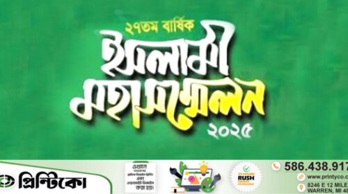 মিশিগানের ডেট্রয়েটে আগামী ৩০ আগস্ট, শনিবার অনুষ্ঠিত হতে যাচ্ছে বার্ষিক ইসলামী মহাসম্মেলন ২০২৫। জামিয়া ইসলামিয়া দারুল উলুম ডেট্রয়েটের উদ্যোগে আয়োজিত এ মহাসম্মেলন বিকাল থেকে শুরু হয়ে রাত পর্যন্ত চলবে। সম্মেলনটি…