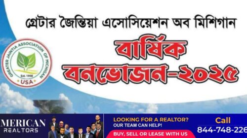 গ্রেটার জৈন্তিয়া অ্যাসোসিয়েশন অব মিশিগান (জিজেএএম)-এর উদ্যোগে আগামী ৭ সেপ্টেম্বর রবিবার অনুষ্ঠিত হতে যাচ্ছে ২৪তম বার্ষিক বনভোজন। অনুষ্ঠানটি হবে মিশিগানের সেন্টার লাইন মেমোরিয়াল পার্কে, ঠিকানা 25355 Lawrence, Center Line, MI…