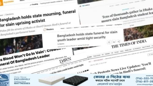 ইনকিলাব মঞ্চের আহ্বায়ক শহীদ শরিফ ওসমান হাদির জানাজায় অংশ নিয়েছেন লাখো মানুষ। শুক্রবার (১৯ ডিসেম্বর) সন্ধ্যায় তার মরদেহ দেশে নিয়ে আসা হয়। শনিবার (২০ ডিসেম্বর) সকালে ময়নাতদন্ত শেষে তার মরদেহ…