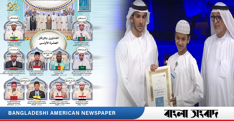 আন্তর্জাতিক হিফজুল কুরআন প্রতিযোগিতায় প্রথম স্থান অর্জন করেছেন হাফেজ সালেহ আহমদ তাকরিম।দুবাইয়ে অনুষ্ঠিত ২৬তম দুবাই আন্তর্জাতিক হিফজুল কুরআন প্রতিযোগিতায় বাংলাদেশের নাম উজ্জ্বল করেন তাকরিম। মঙ্গলবার(৪ এপ্রিল) বাংলাদেশ সময় রাত সাড়ে…