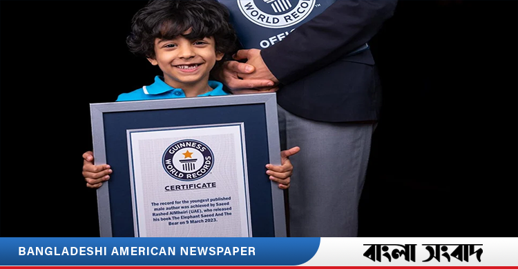 সংযুক্ত আরব আমিরাতের মাত্র চার বছর বয়সে বই প্রকাশ করে গিনেস ওয়ার্ল্ড রেকর্ডে নাম লিখিয়েছে এক শিশু । সাঈদ রাশেদ আইমহেইরি নাম ওই শিশুর বইয়ের নাম ‘দ্য এলিফ্যান্ট সাঈদ এন্ড…